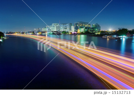 cityscape at night chao phraya river of bangkok city landscape Thailand , long exposure light