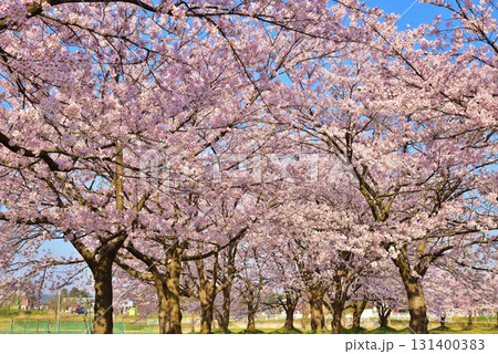 春の桜並木 満開の観音寺川の桜 福島県猪苗代町