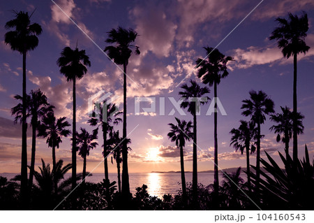 椰子の木が美しい、ピンクゴールドの夕暮れ風景