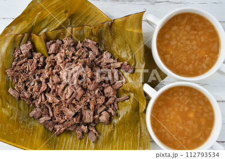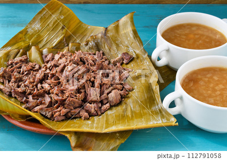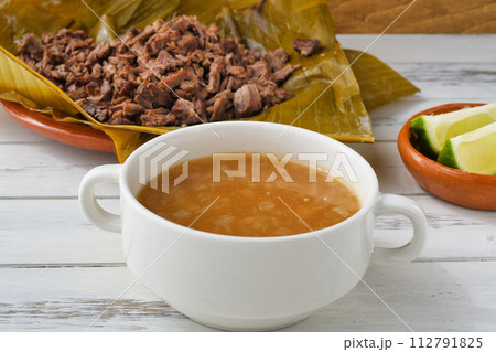 メキシコの牛肉のバルバコアとバルバコアのコンソメ