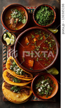 Savory birria feast featuring tacos and consome bowls served elegantly