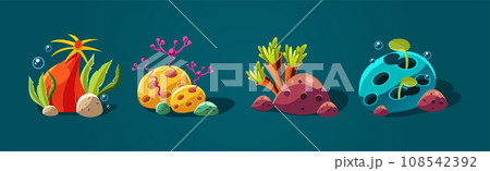 Sea coral and underwater ocean reef plant cartoon