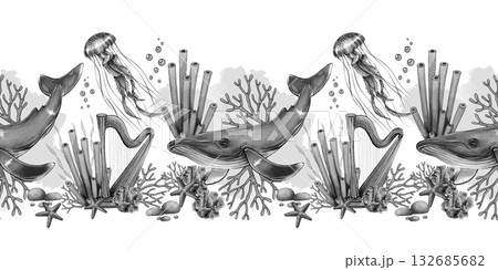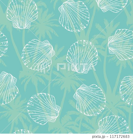 Hand drawn vector illustrations - seamless pattern of seashells. Marine background.