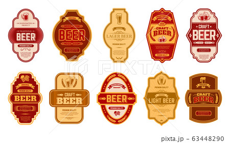 Beer vintage labels. Retro beers brewery badges, alcohol craft vintage lager can or bottle symbols vector isolated illustration set