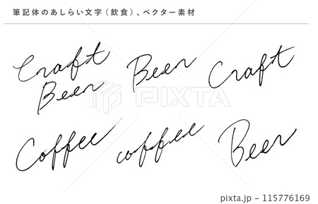 コーヒーとビールのあしらい用飾り文字、筆記体の英語の手書き文字、ベクター素材