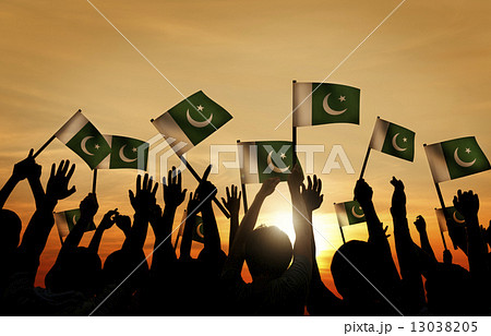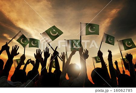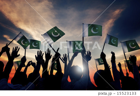Group of People Waving Flag of Pakistan in Back Lit