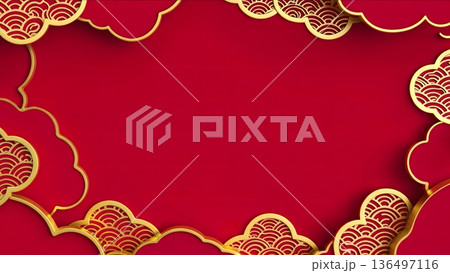 Elegant Red Background with Gold Cloud Patterns for Celebration Design