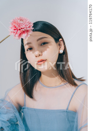 ダリアの花をクローズアップした明るくて優しい雰囲気のイメージ背景素材