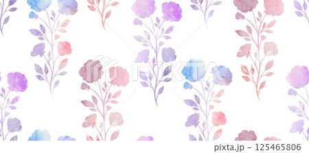 Vector seamless pattern with watercolor floral silhouette on white background. Texture with pink and violet paint wild flowers. Rustic wallpaper