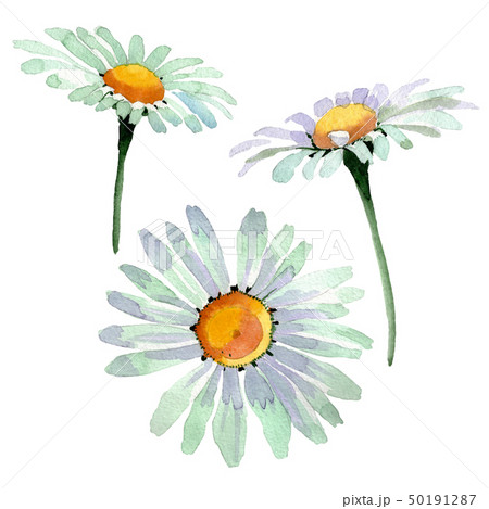 Big white chamomile floral botanical flowers. Watercolor background set. Isolated chamomile