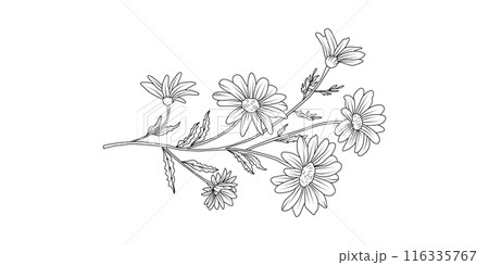 Chamomile freehand black ink sketch