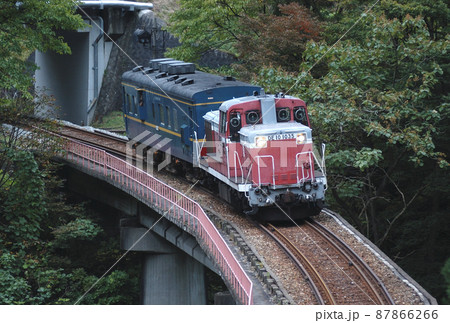 わたらせ渓谷鐵道 紅葉のわたらせ渓谷を走るトロッコわたらせ渓谷号(沢入付近)