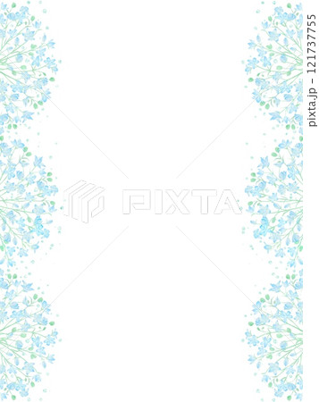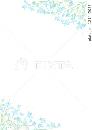 水色のスプレーデルフィニウムで飾ったおしゃれな縦長フレーム。春らしい水彩イラスト。
