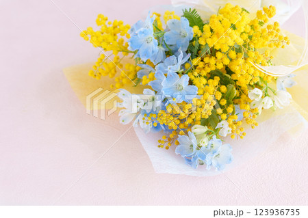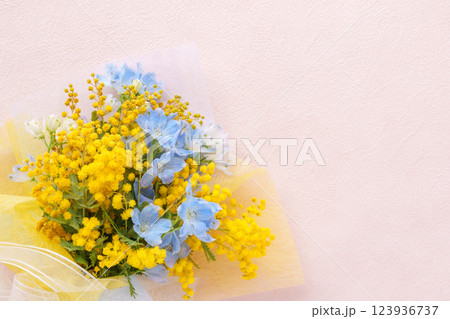ミモザとデルフィニウムの花束