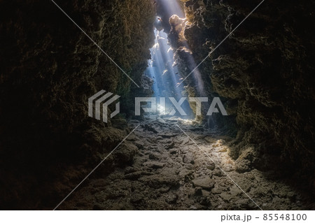 宮古島の魔王の宮殿でダイビングをするダイバー