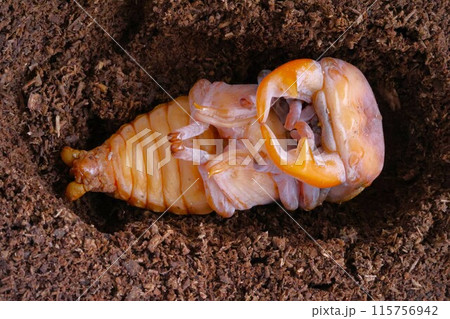 大きなオオクワガタのオスの蛹
