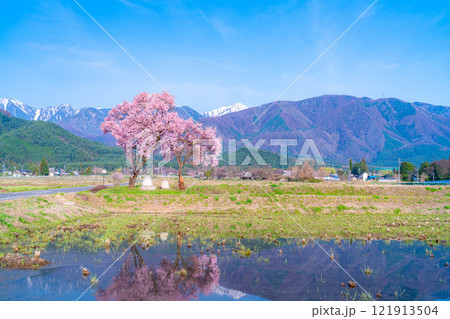 【桜素材】安曇野市春の原風景・常念道祖神の桜【長野県】