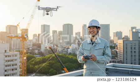ドローンを操作する作業員 i-Construction・DXイメージのイラスト素材
