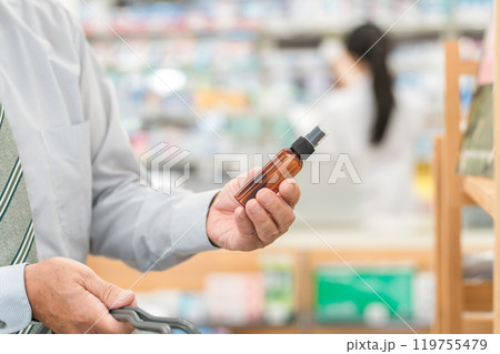 薬局・ドラッグストア・コンビニエンスストアでスキンケア商品を選ぶシニア男性の手元