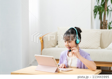 インカムをつけて勉強する女の子