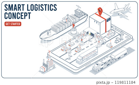 Smart logistics combines warehouse management and IoT transportation to optimize supply chain operations concept. Vector illustration eps10