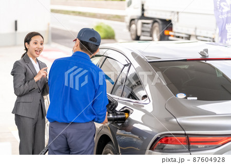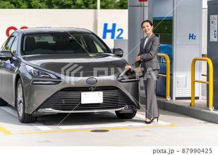 水素ステーション ビジネスウーマン 水素燃料電池自動車