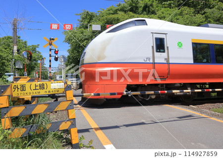 外面踏切を通過する特急つがる