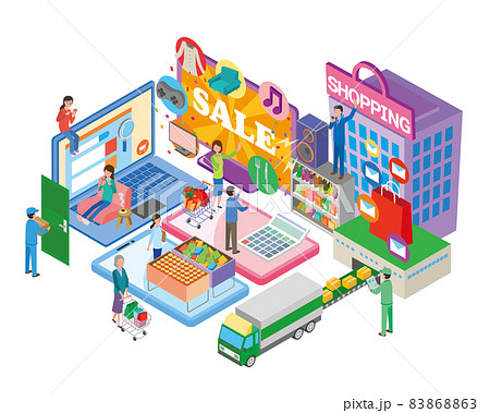 eコマース・OMO・O2O・オムニチャネルのイラスト素材