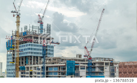 Construction site of a modern skyscraper in Singapore timelapse