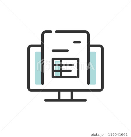 パソコンで書類作成するアイコン(版ずれ・ブルー)