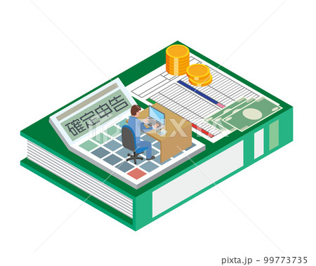 オンラインで確定申告、納税を行うアイソメトリックなベクターイラスト (経理・インボイス)