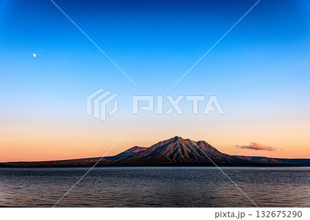 夕暮れの支笏湖と風不死岳