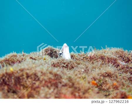 穴から顔を出す、可愛いニセクロスジギンポ(イソギンポ科)。ヒリゾ浜中木南伊豆町伊豆半島静岡県2024
