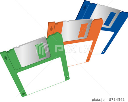 いろんな色のフロッピーディスクのイメージイラスト(記録媒体)