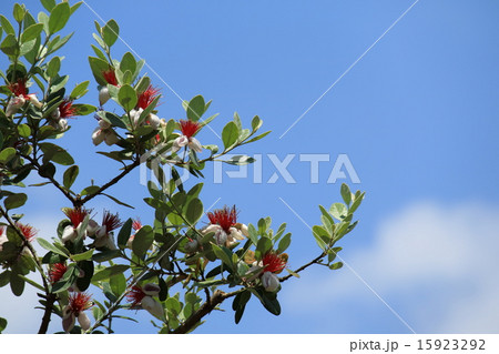 赤と白のフェイジョアの花(夏、六月)