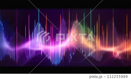 abstract technology background with neon waveform of audio signal, speech and sound concept