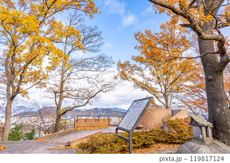 弁天山公園 秋 紅葉 福島市内 信夫山 町並み