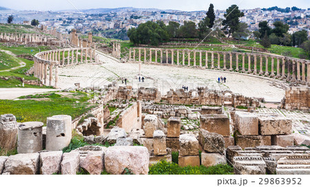 Forum (Oval Plaza) in Gerasa (Jerash), Jordan.