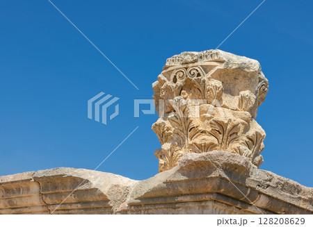 Closeup of Corinthian Column details in the center of the Jerash. Jordan.