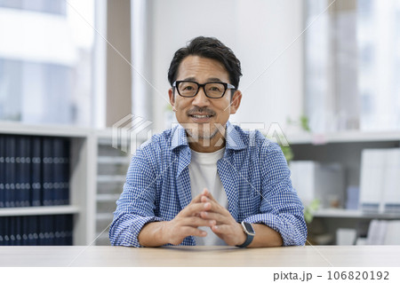 メガネをかけた50代の男性 カメラ目線 ポートレート