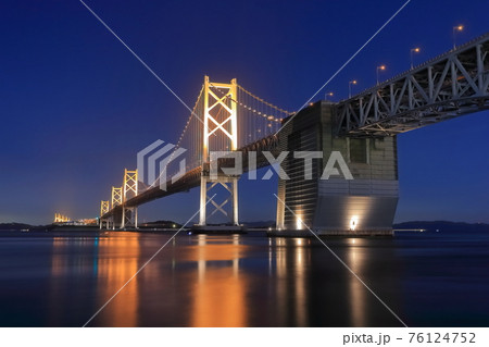 田土浦公園から見た夜のライトアップされた瀬戸大橋 岡山県倉敷市