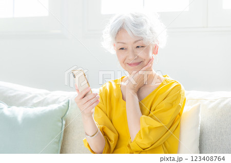 スマホを見るシニア女性