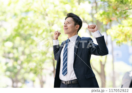 ビジネスマン ポートレート 新緑 伸び