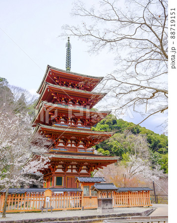 春の長谷寺 五重塔(奈良県)