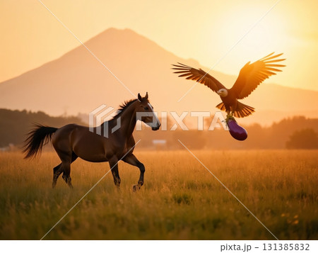 初日の出のイラスト ダイヤモンド富士と鷹