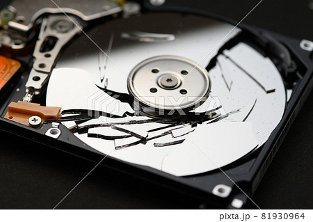 殻割したハードディスクの接写写真