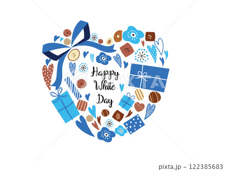 Happy Valentine Day greeting card. Holiday background with romantic stickers and love symbols.