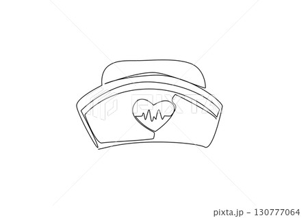 Single one line drawing nurse cap with heart pulse logo in the middle. Symbolism to always be ready in any situation. Helping others. National Nurses Day. Continuous line design graphic illustration