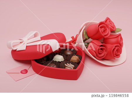 Dusty pink roses in heart shaped red gift box. Hand drawn watercolor illustration of vintage flower bouquet isolated on background. Drawing of present for 14 february romance date. For greeting cards.