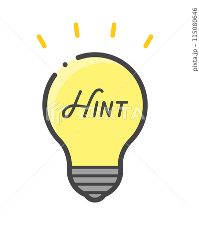 Hintの文字と光っている電球のアイコン -ヒント・アイデア・アドバイスのイメージ素材